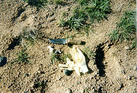 "Two pieces of toilet paper (for your nose), two rubber gloves, and a knife"